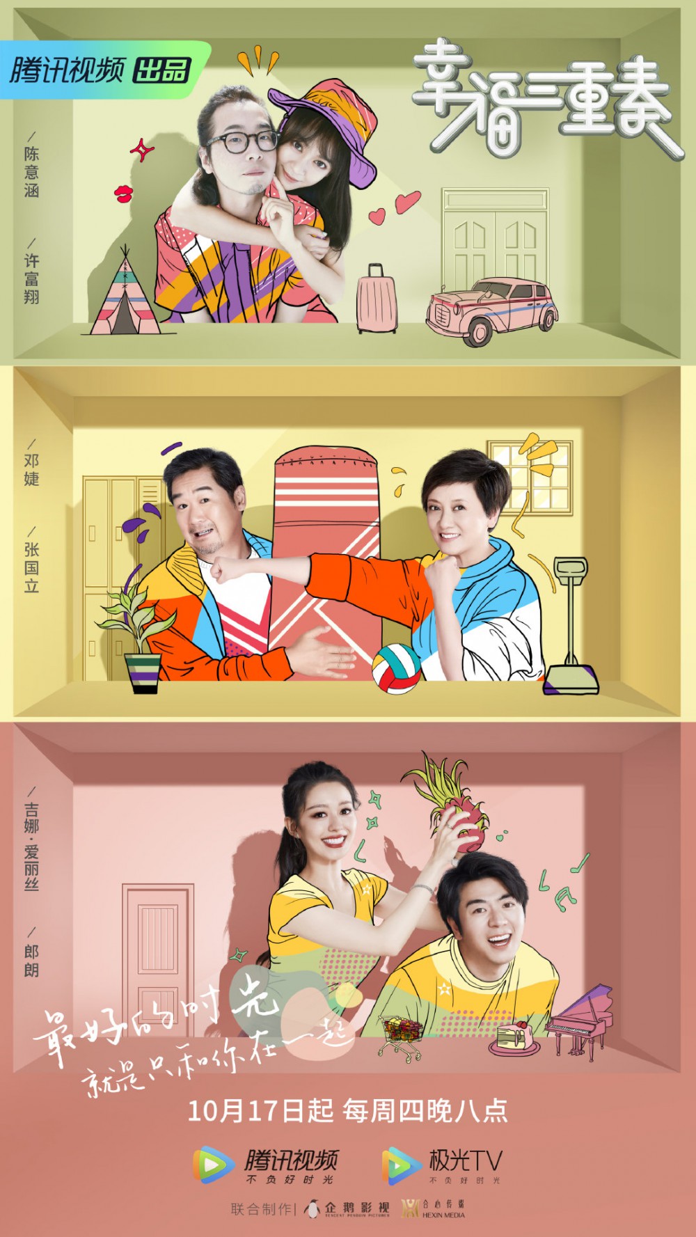 节目简介:《幸福三重奏》第二季将真实记录三对婚姻构成方式不同的夫妻,共同前往一处为他们专属定制的“二人世界”,在一段难得的独处时光里,远离现实生活中繁杂日常的干扰,将目光聚焦二人世界的相处,呈现婚姻生活幸福细节。